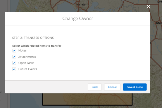 It finally happened — the rock star sales rep is taking a long-overdue vacation. Before they leave, they can distribute their accounts to other representatives to keep an eye on things. With Salesforce Maps, this can take only minutes to do. Using the Mass Action feature, you can select as many records as you want, based on any criteria you wish, and reassign the owners of those records to other reps.