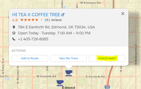 Salesforce Maps will create new records for you without leaving the Map tab. There are two great options with this function you will find extremely useful. First, when you create new records, the data gathered from Maps will populate in the fields you have set up for those records. This nimbleness is extremely valuable — you don’t have to worry about transposing addresses or phone numbers.