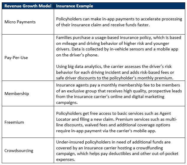 Here are some examples of how these business models can drive new revenue growth for P&C insurance: