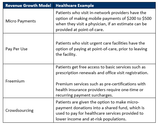Now that we’ve identified some alternative business models and mobile pricing strategies, let’s take a closer look at how mobile payments might be applied in some existing industries: Insurance and Healthcare.