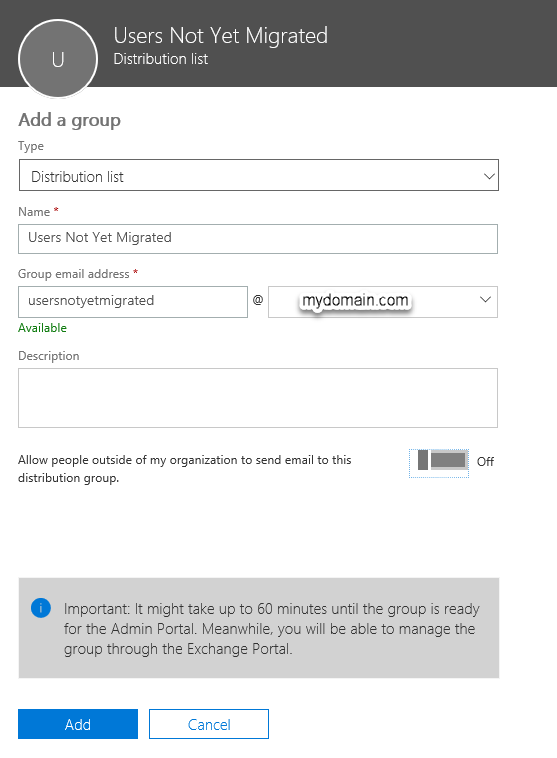 14. Create an Microsoft 365 distribution group for users not yet migrated.