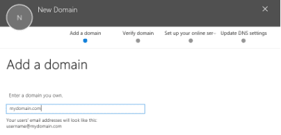 You may see “Setup in progress” in the domains window beside mydomain.com. This is expected and you can safely move forward.