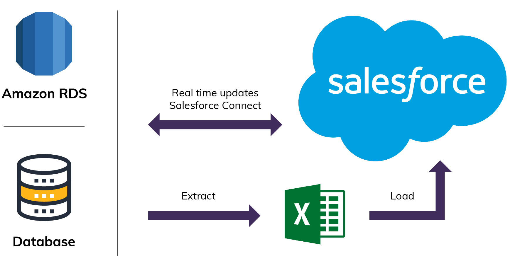 A virtual integration is popular when organizations want their employees to use only a single software platform or do minimal software switching while working on various tasks. Salesforce offers IFrames to connect to external systems and can act as a “one-stop” system for external software systems that are browser-based.