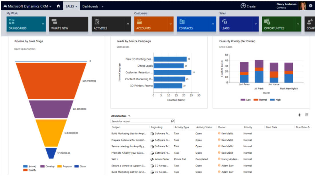 In 2011, Microsoft developed Dynamics CRM Online, marketing its first shift toward a cloud-based CRM. This move positioned Microsoft to become a competitor to Salesforce. But Microsoft didn’t stop there.