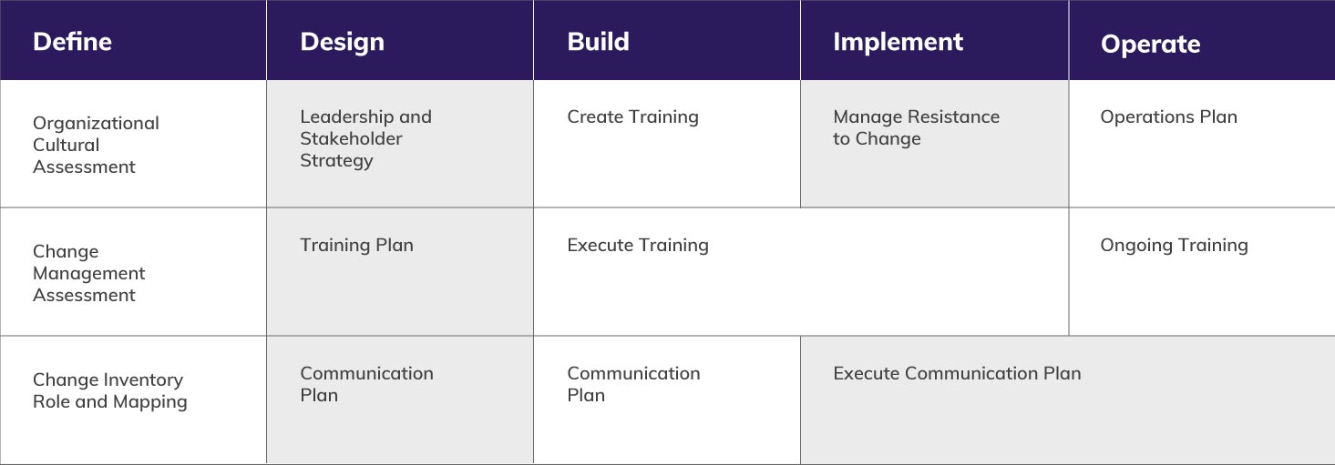 For major change to succeed, you need to have a structured process to help people adapt and adopt tomorrow’s new reality. You need to manage the human factor by capturing the hearts and minds of all impacted groups. In doing so, you help the people involved successfully adopt the change presented to them.