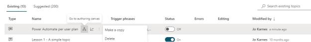 To change the topic, I can highlight it and then click “Go to authoring canvas.”