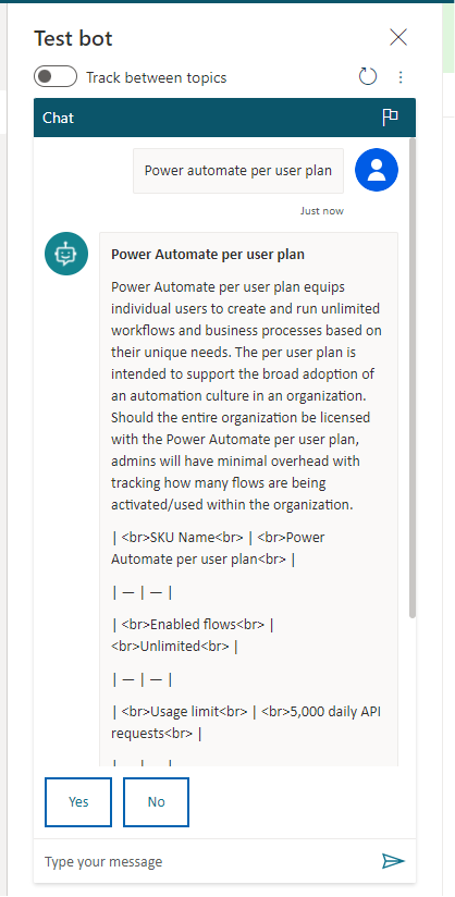 The chatbot we are going to build will help us find information on Power Platform licensing by using the Suggested Topics feature to crawl the Power Platform Licensing PDF as well as the FAQ listed on Microsoft’s website. Suggested Topics uses AI to analyze and recommend the most likely topics that appear in the documentation. You can then connect Suggested Topics to any publicly available document or site for it to read from.
