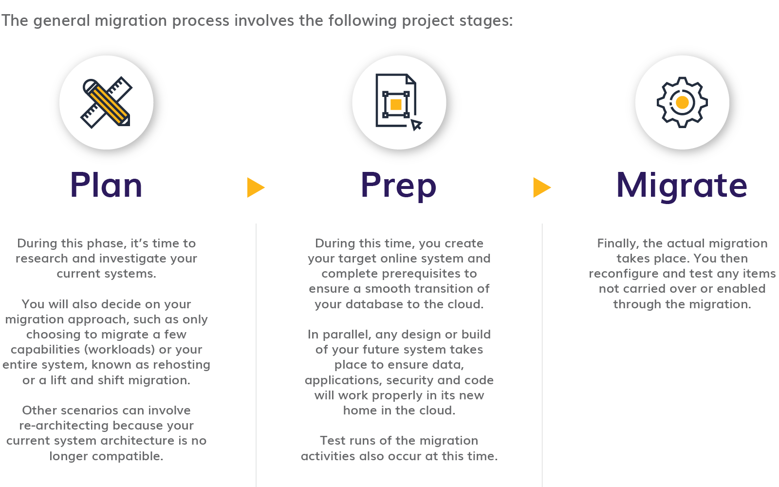 It’s helpful to have a step-by-step migration stage template to follow and an experienced, knowledgeable partner to guide you through the transition.