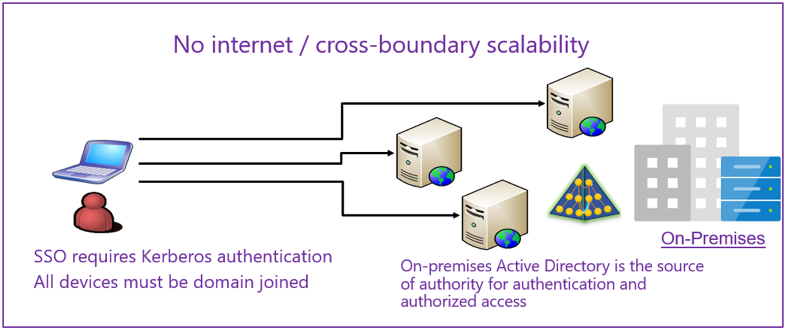 - Federated identity allows customers to retain the application’s authentication process to occur on-premise, where the passwords are stored via Active Directory Federation Services (ADFS).