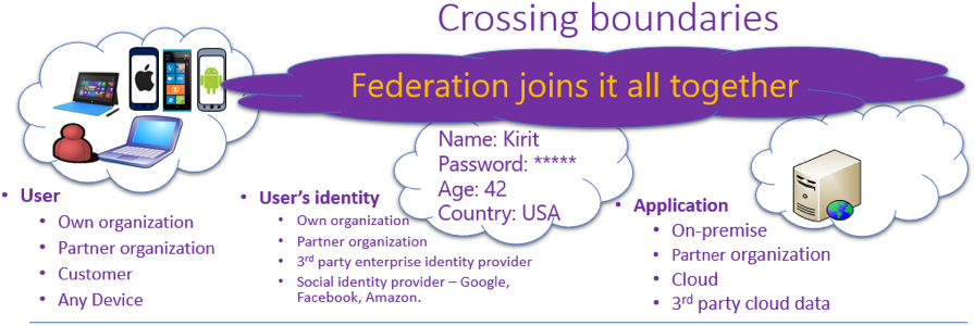 WS-Fed, SAML, and OAuth are such federation sign-in protocols. Think of a federation between two organizations like the watered-down version of an Active Directory trust between two domains. We started with identity terminology, but keep reading as we dive deeper into supporting topics.