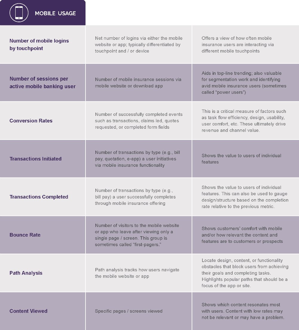 While mobile teams have been embracing technical metrics for years, only recently have brands begun to establish business-friendly metrics for measuring engagement. Here are a few examples of mobile engagement metrics for financial services and insurance: