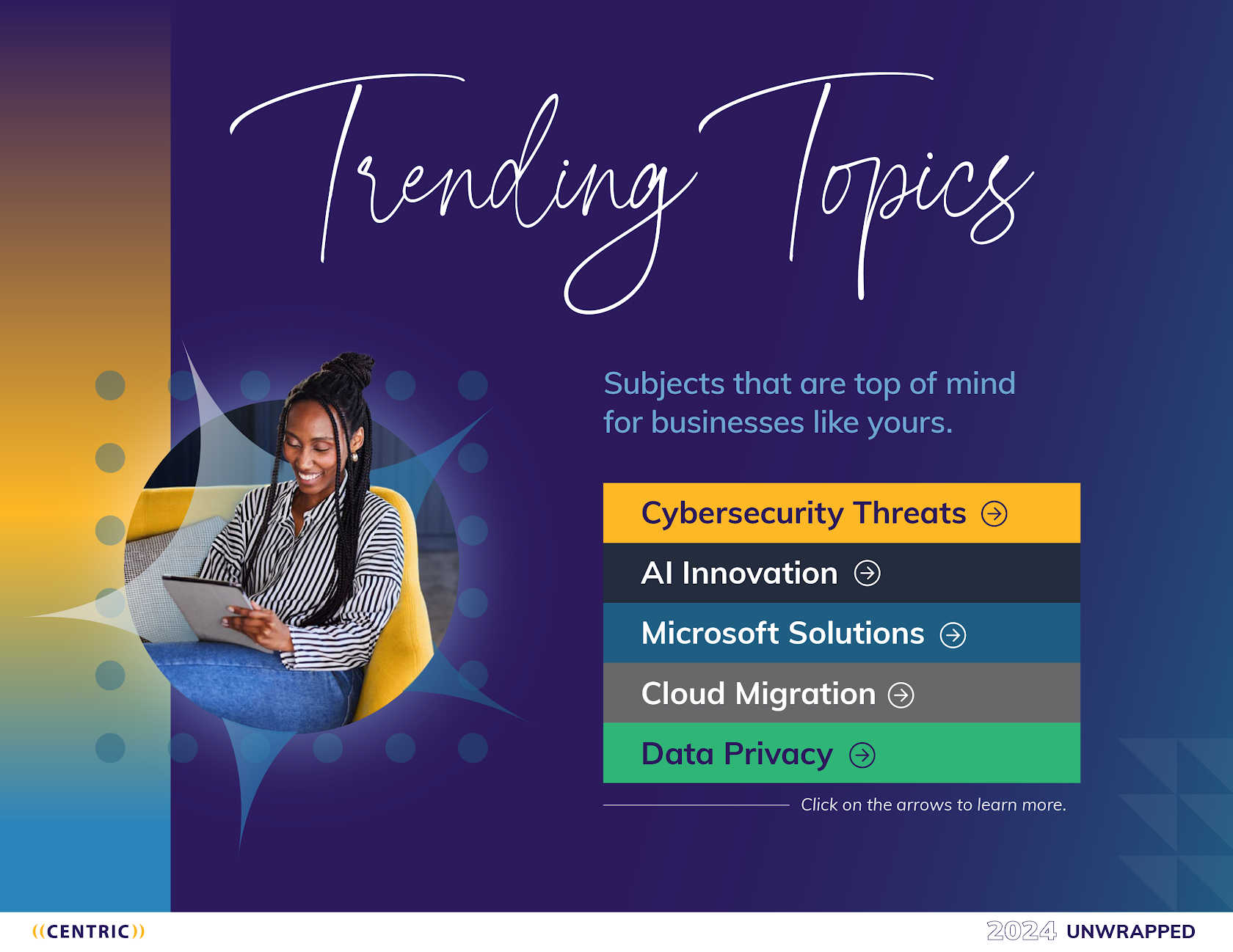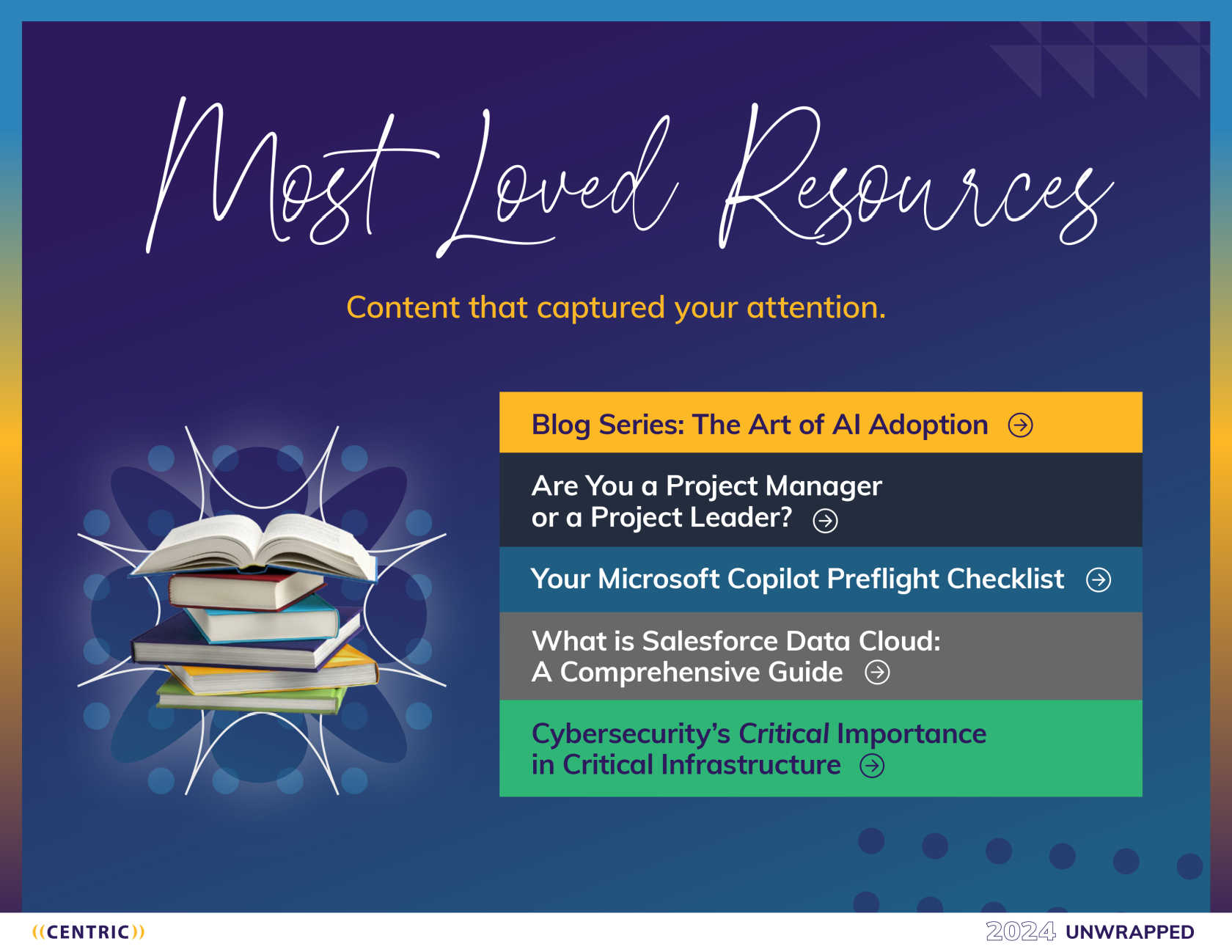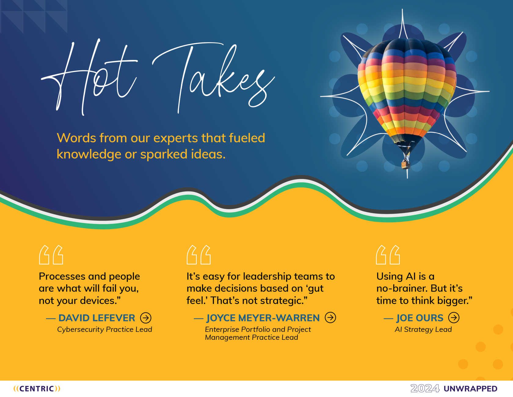 When you download our curated PDF, you’ll enter a world of valuable information from your Centric friends. Our most attention-grabbing blogs, super-hot trending topics, top webinar insights, hot takes from some of our practice leads, valuable stats, and more — all at your fingertips!